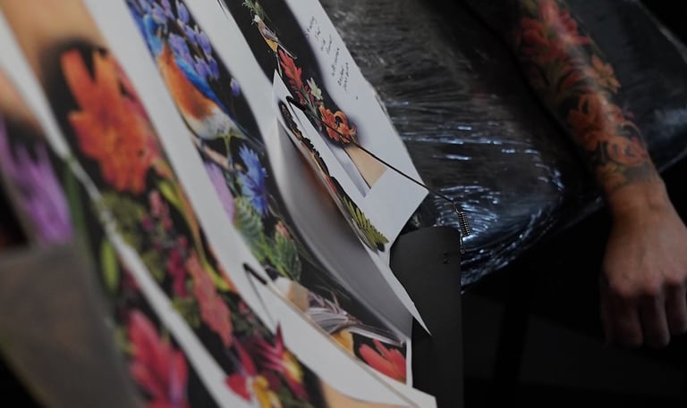 Discover my portfolio showcasing custom designs that explore a range of color pallets, reflecting my passion and expertise as a tattoo artist.